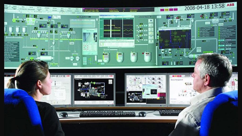 Plants, be they electric, chemical, or water treatment, are typically operated by industrial PCs running SCADA software. SCADA (Supervisory Control And Data Acquisition) is a fancy software package that presents factory controls as a computer screen with digital buttons and knobs, graphs, meter readouts, and so on. An example of SCADA displays is shown below.