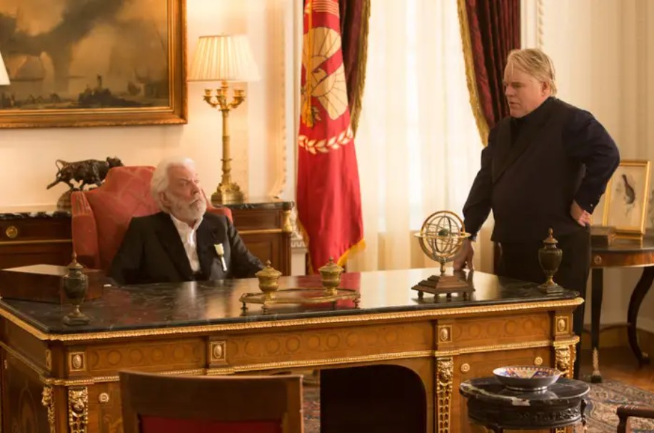 As an example, actor Wes Bentley of Yellowstone fame played the game designer for the Hunger Games, Seneca Crane. His character displayed unusual facial hair. Donald Sutherland played the evil and heartless President Corolianus Snow.